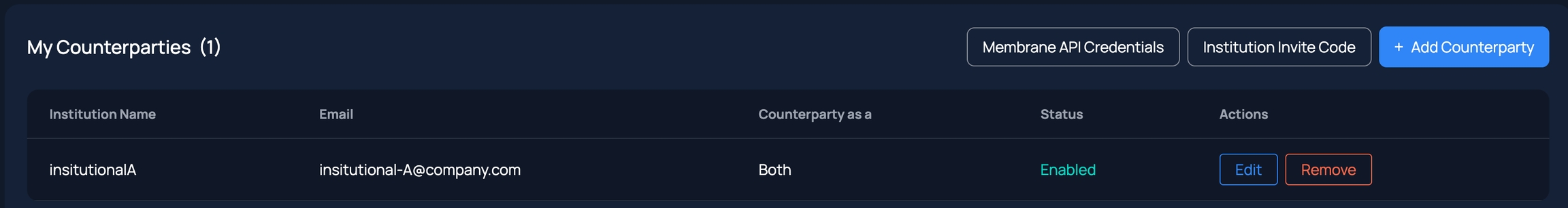 The Counterparty Management System is the foundation of Indication Market, enabling institutions to establish, configure, and manage bilateral trading relationships with other known institutional partners. This system provides comprehensive controls for invitation management, role configuration, and trading parameter customization.